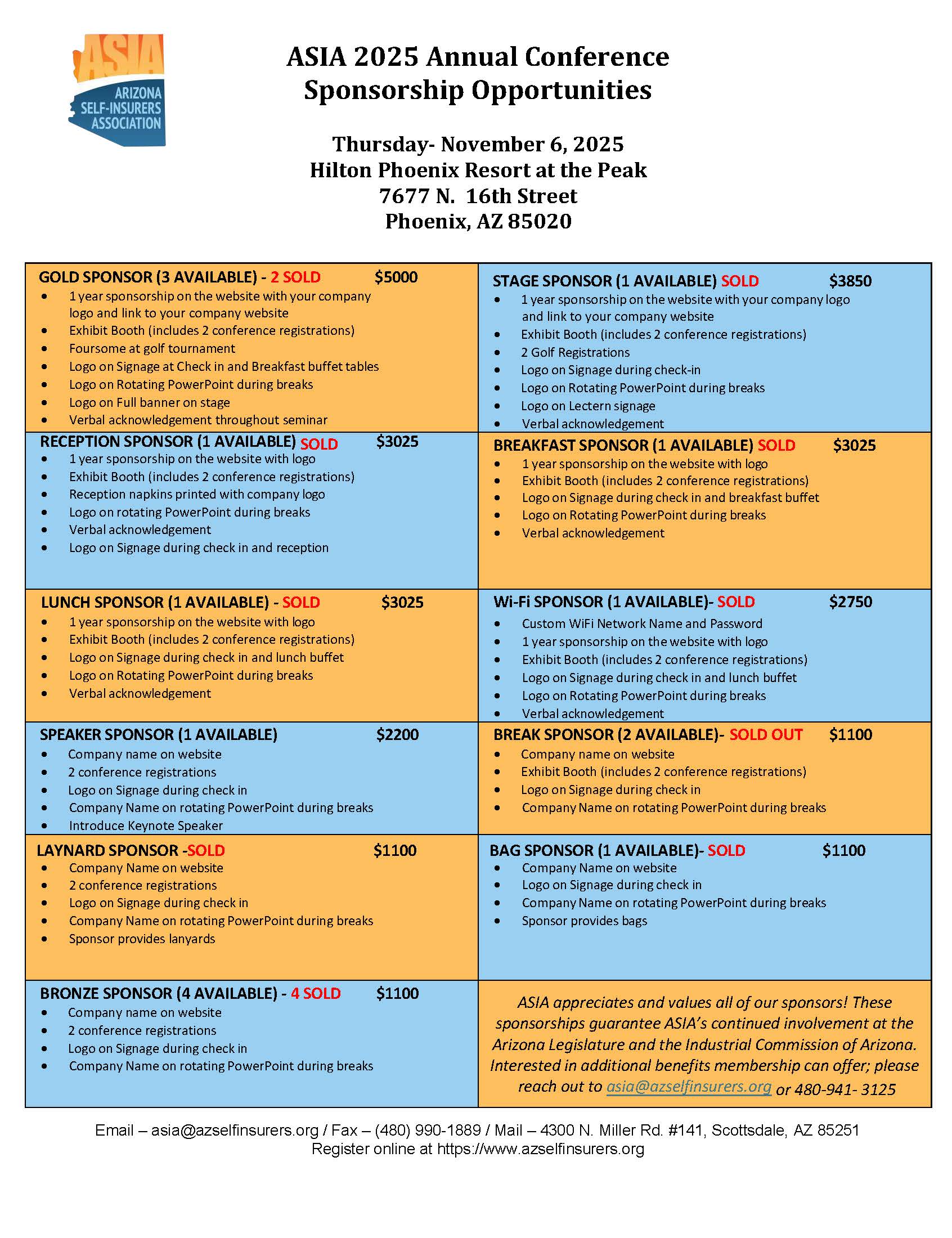 Sponsorship Reservations must be submitted and paid by: October 30, 2025